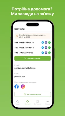 PAN-BUS е приложение, което предлага бързо, удобно и безопасно резервиране и закупуване на билети от официални превозвачи. Разгледайте и актуални разписания на автобуси в градовете на Украйна, Полша и Чехия.