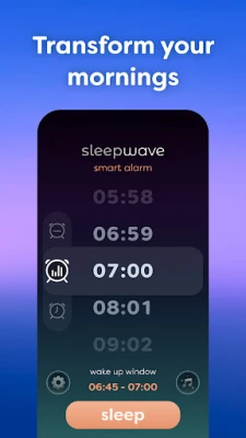 Мечтаете ли за събуждане, изпълнено с енергия, а не с умора? Спрете да се борите с будилника си и открийте Sleepwave – иновативното приложение, създадено да трансформира нощите и утрините ви. Използвайки патентована технология за движение, интелигентният будилник на Sleepwave улавя идеалния момент във вашия цикъл на сън, за да ви събуди нежно и естествено. Забравете за рязкото звънене – пригответе се да посрещате всеки нов ден свежи, отпочинали и напълно готови за предизвикателствата, подобрявайки качеството на съня си с течение на времето.