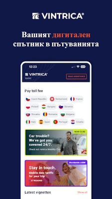 Представете си безгрижно пътуване из Европа, където пътните такси и възможните проблеми са просто далечен спомен. vintrica.com преобразява вашето пътешествие, обединявайки електронни винетки, решения за пътни такси и помощ при повреда в едно интуитивно приложение. Забравете за дългите опашки и излишните документи – с vintrica.com можете лесно да закупите дигитални винетки за над 13 европейски държави, включително Швейцария, Чехия, Унгария, България и вече Полша (магистрала А1). Освен това, нашето иновативно бордово устройство ви осигурява безпрепятствен достъп до магистралите в Италия, Франция, Хърватия, Испания и Португалия, предлагайки гъвкави тарифи "Drive & Go" за инцидентни пътувания или "Flatrate" за редовни маршрути. Едно устройство, покриващо пет държави, гарантира максимално удобство.