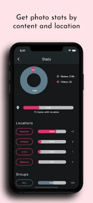 Visio.AI Gallery ви помага да разберете и оптимизирате вашата фототека по начини, които не сте си представяли. С функцията "Фото карта" можете да проследите точно къде са заснети вашите изображения, а "Статистиките за снимки" ви дават ценна информация за броя кадри от дадено събитие или местоположение. Омръзнало ли ви е от дубликати, които заемат ценно място? Нашата функция за откриване на "Подобни снимки" ви позволява лесно да ги идентифицирате и изтриете, освобождавайки памет. Освен това, с възможността за "Компресиране на изображения", можете да намалите размера на файловете, без да жертвате качеството, гарантирайки повече пространство за нови спомени.